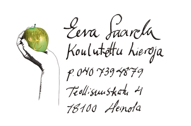 Hierontatilani sijaitsee kotini yhteydessä rauhallisessa vanhassa pihapiirissä Heinolan Hevossaaressa. Hierontahuone on kolmikerroksisen Valkoisen talon alakerrassa ja sinne on oma sisäänkäynti talon alapihalta.